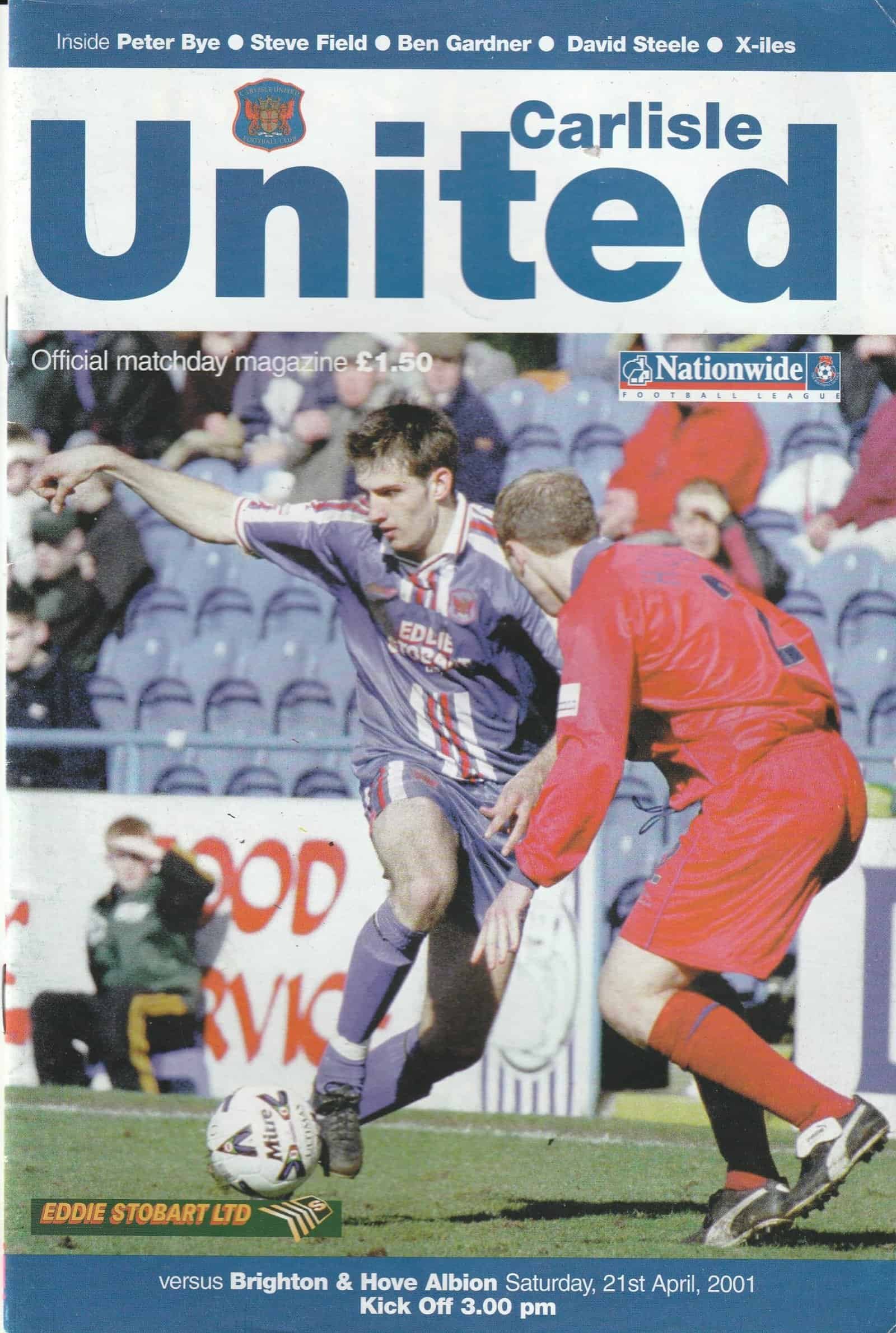 Match: Carlisle United v Brighton & Hove Albion Competition: Nationwide League Division 3 Date: 21-Apr-2001 Comments: Rating: 4 Condition: Very good Weight in grams: 100