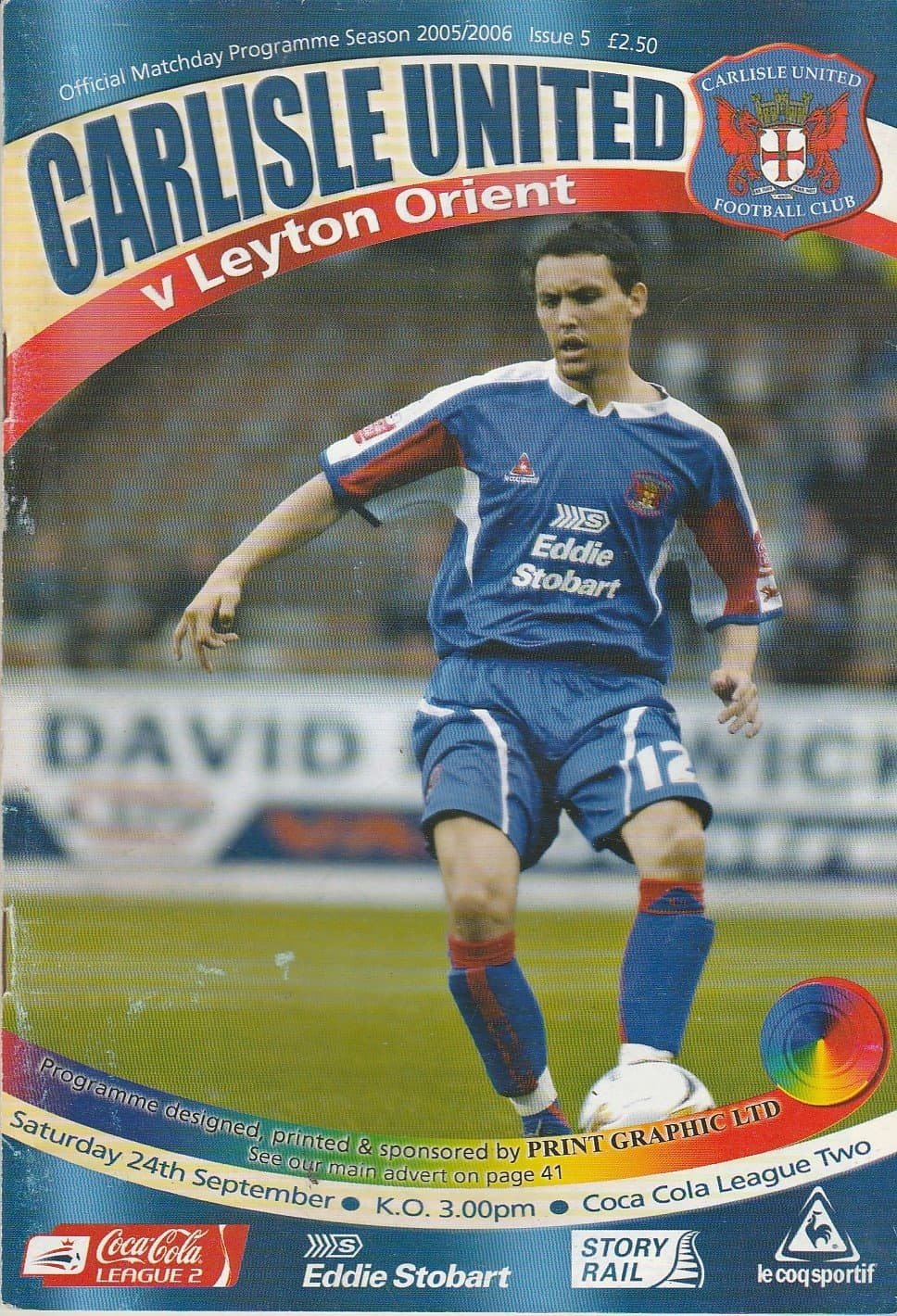Match: Carlisle United v Leyton Orient Competition: League 2 Date: 24-Sep-2005 Comments: Carlisle United league champions this season Rating: 4 Condition: Good Weight in grams: 160