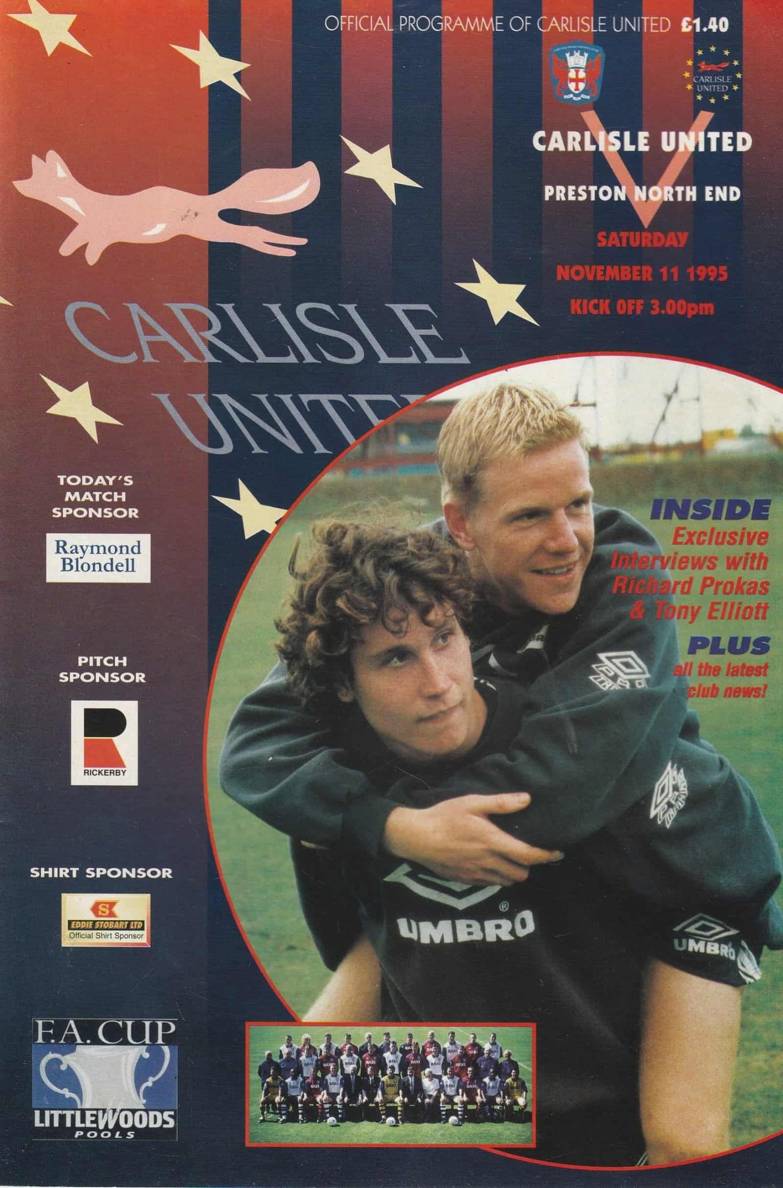 Match: Carlisle United v Preston North End Competition: FA Cup 1st Round Date: 11-Nov-1995 Comments: Rating: 4 Condition: Very good Weight in grams: 120