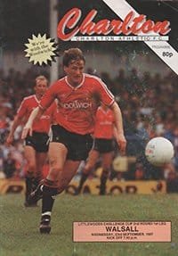 Match: Charlton Athletic v Walsall Competition: Littlewoods Cup Date: 23-09-1987 Comments: Rating: 3 Condition: Marks on face, Slight fold Weight in grams: 80