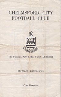 Match: Chelmsford City Reserves v St Neots Competition: Metropolitan League Professional Cup Date: 14-02-1966 Comments: Rating: 2 Condition: Heavy creasing, soiling Weight in grams: 20