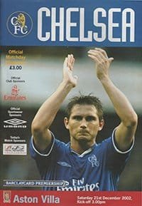 Match: Chelsea v Aston Villa Competition: Premier League Date: 21-12-2002 Comments: Rating: 5 Condition: Excellent Weight in grams: 200