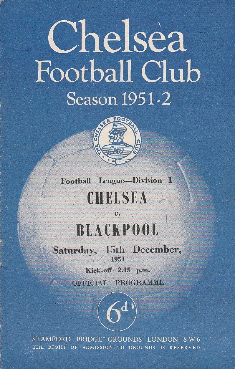 Match: Chelsea v Blackpool Competition: League Division 1 Date: 15-Dec-1951 Comments: Rating: 3 Condition: Fold, score on face in pencil, scores entered on half time scoreboard in pencil Weight in grams: 40