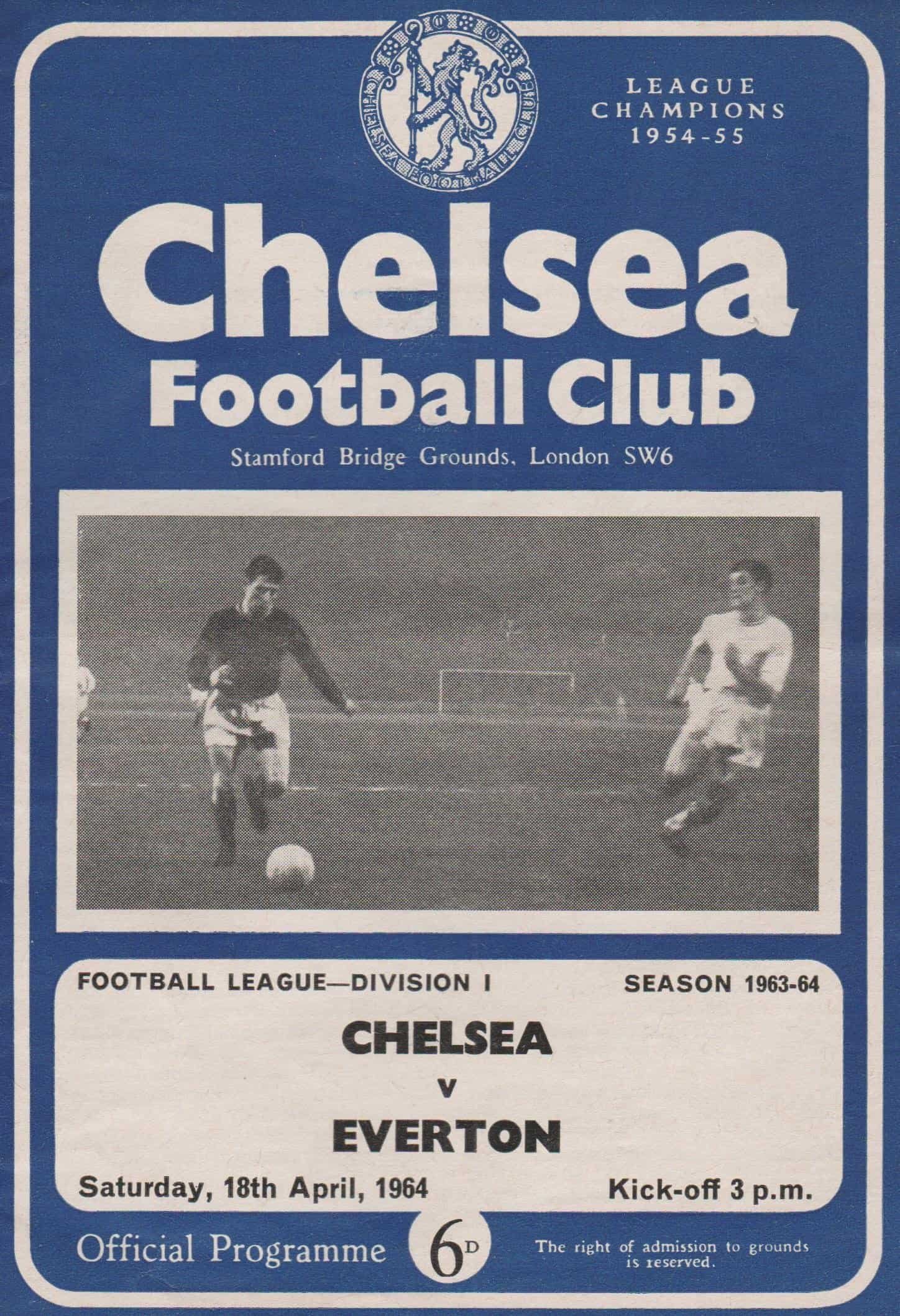 Match: Chelsea v Everton Competition: League Division 1 Date: 18-Apr-1964 Comments: Rating: 3 Condition: Team changes, crease inside Weight in grams: 40