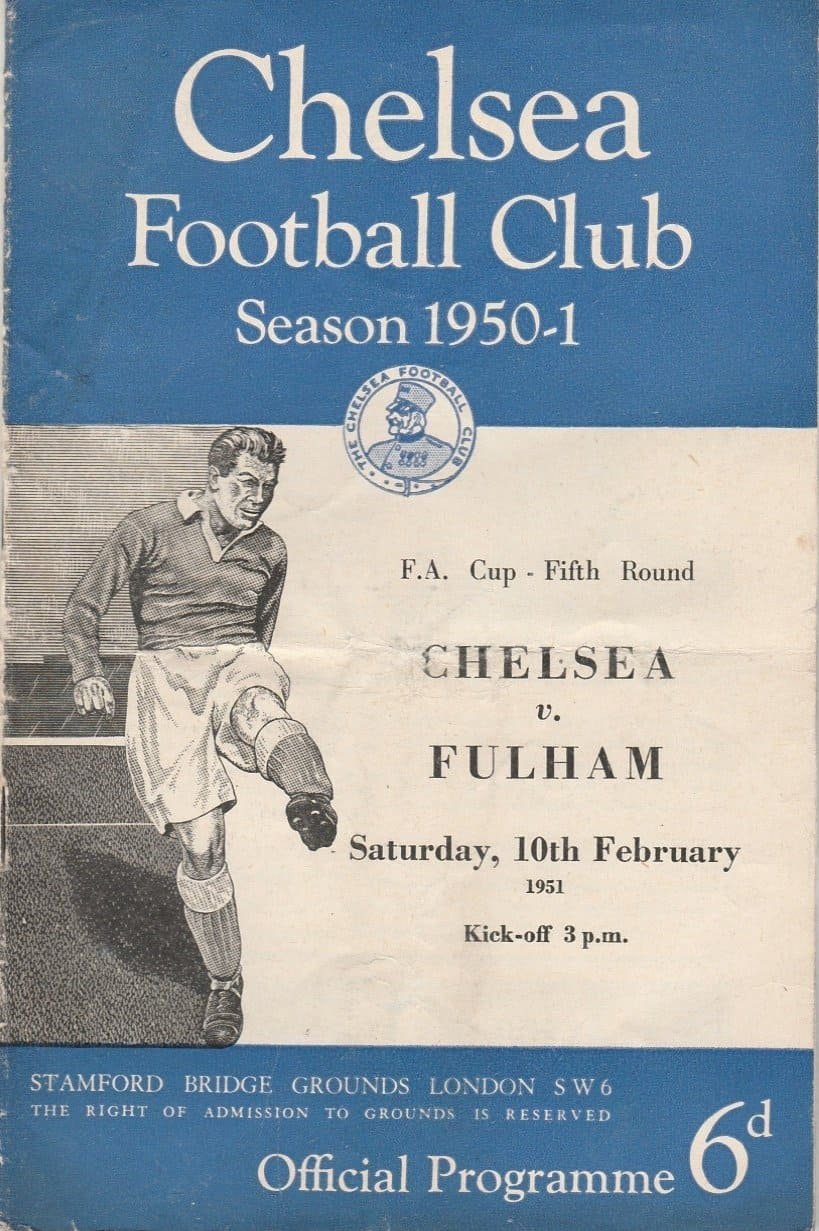 Match: Chelsea v Fulham Competition: League Division 1 Date: 10-Feb-1951 Comments: Rating: 3 Condition: Crease, tear on back page, writing on back Weight in grams: 40