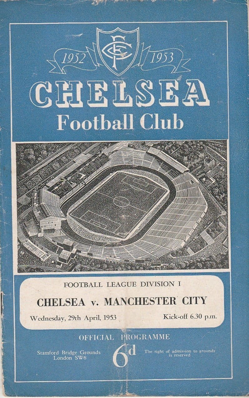 Match: Chelsea v Manchester City Competition: League Division 1 Date: 29-Apr-1953 Comments: Rating: 3 Condition: Fold, handling wear to cover Weight in grams: 60