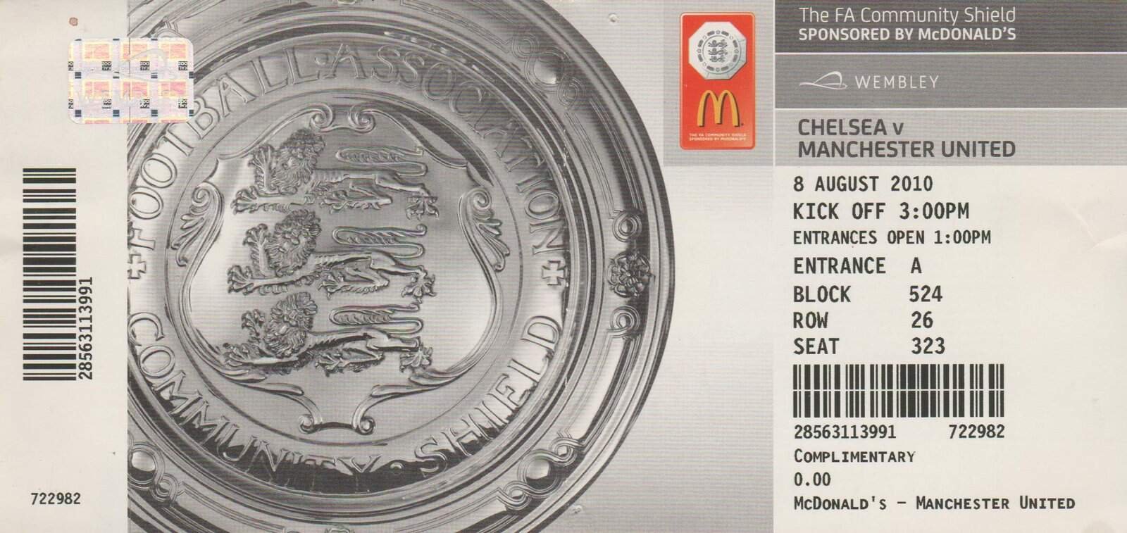 Match: Chelsea v Manchester United Competition: Charity Shield Date: 08-Aug-2010 Comments: Rating: 4 Condition: Very good Weight in grams: 10
