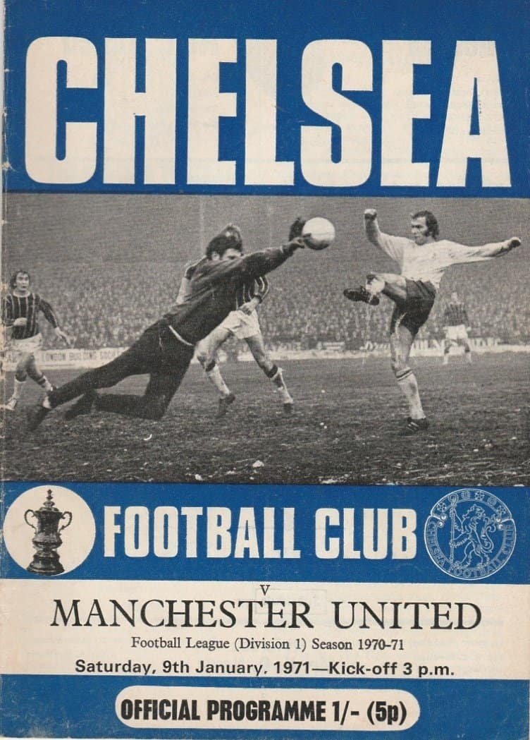 Match: Chelsea v Manchester United Competition: League Division 1 Date: 09-Jan-1971 Comments: Rating: 3 Condition: Team changes Weight in grams: 60