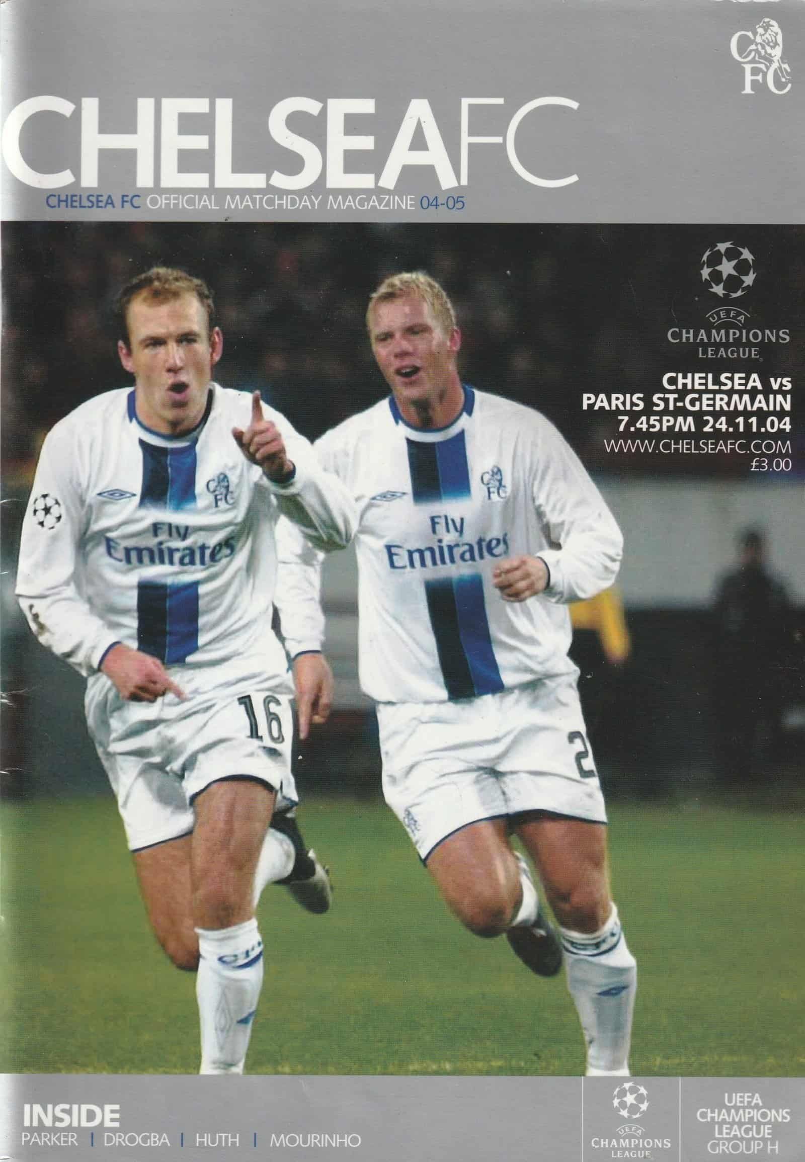 Match: Chelsea v Paris St Germain Competition: Champions League Group H Date: 24-Nov-2004 Comments: Rating: 4 Condition: Very good Weight in grams: 240
