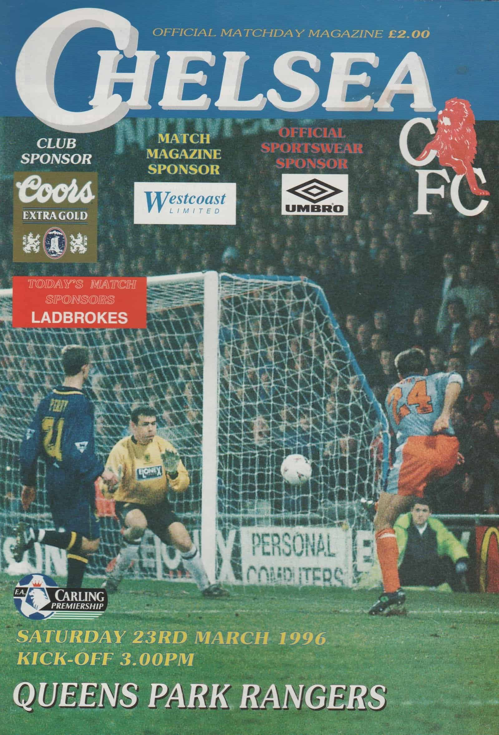 Match: Chelsea v Queens Park Rangers Competition: Premier League Date: 23-Mar-1996 Comments: Rating: 4 Condition: Very good Weight in grams: 200