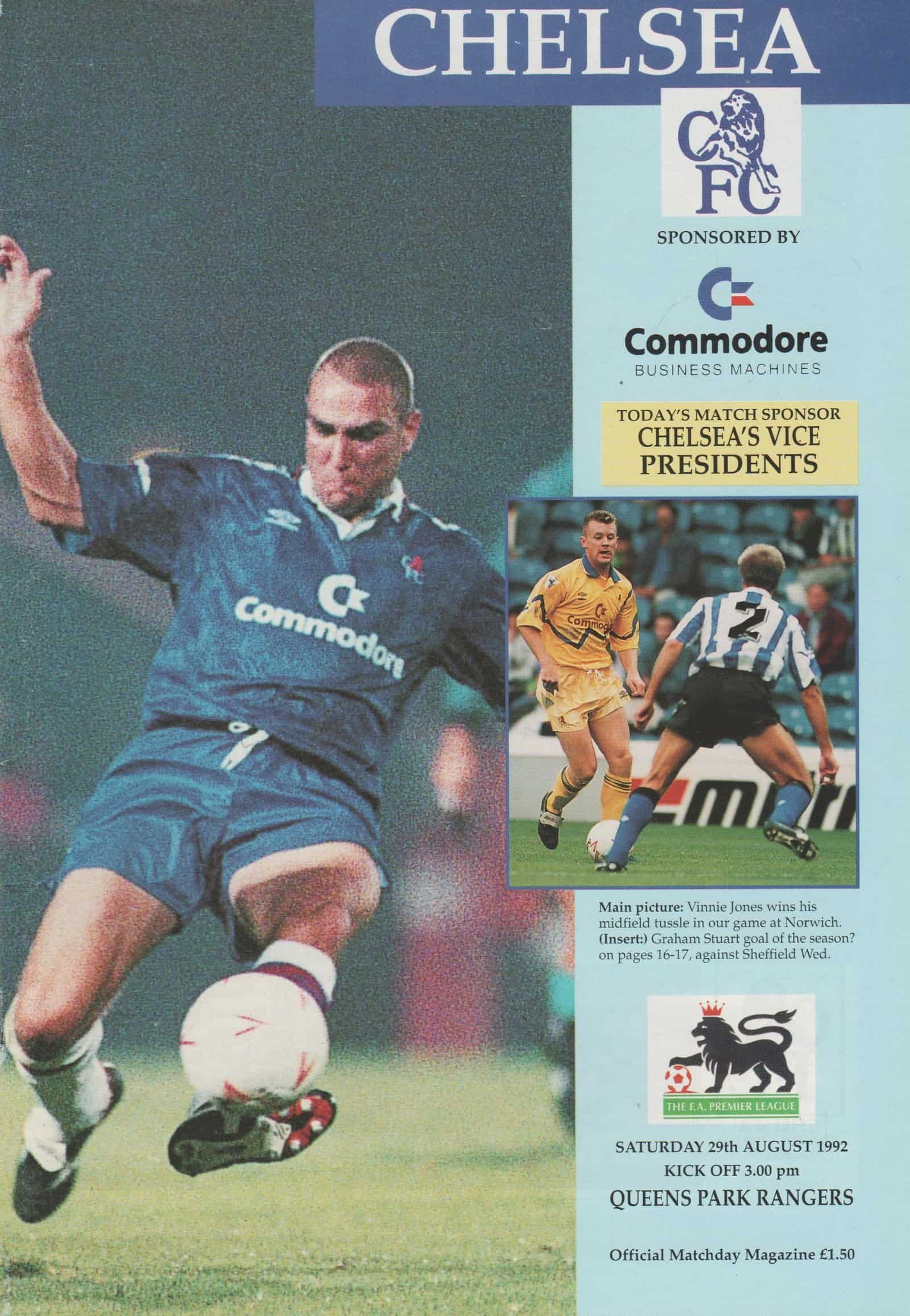 Match: Chelsea v Queens Park Rangers Competition: Premier League Date: 29-Aug-1992 Comments: Rating: 4 Condition: Very good Weight in grams: 100
