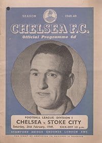 Match: Chelsea v Stoke City Competition: League Division 1 Date: 26-02-1949 Comments: Rating: 3 Condition: Punch hole on corner, team changes, half time scores completed on back Weight in grams: 60