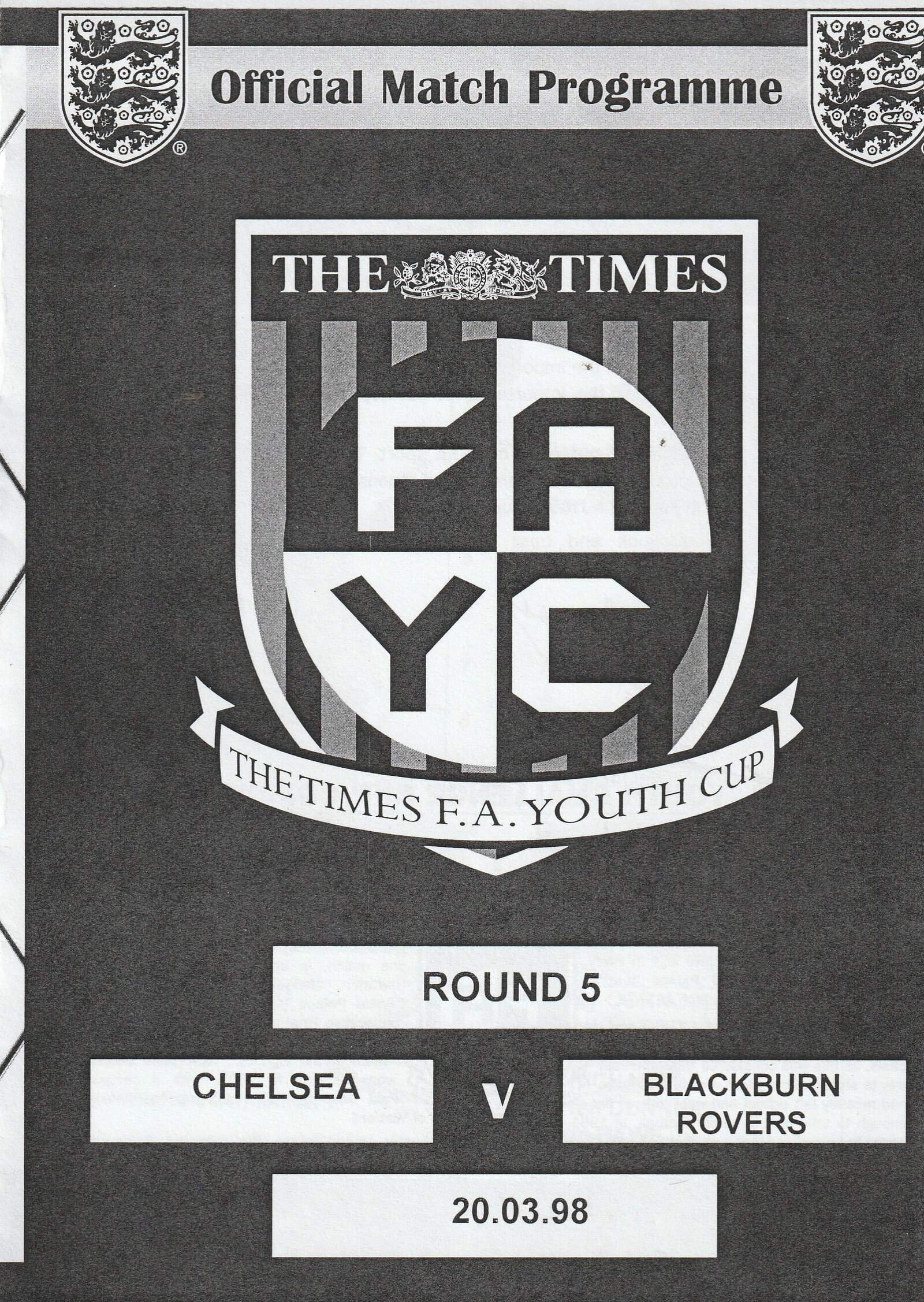 Match: Chelsea Youth v Blackburn Rovers Youth Competition: FA Youth Cup 5th Round Date: 20-Mar-1998 Comments: 4 page issue Rating: 4 Condition: Very good Weight in grams: 20
