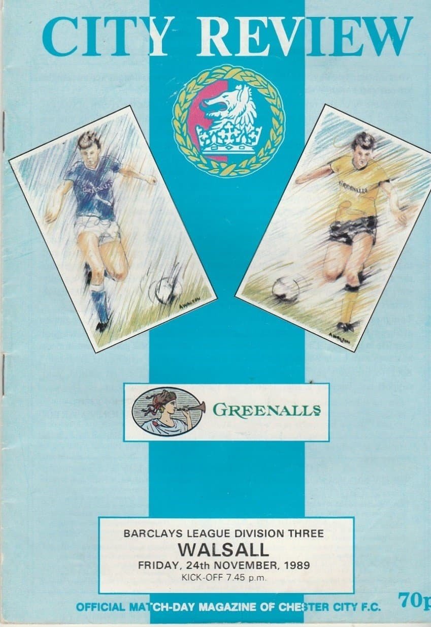 Match: Chester City v Walsall Competition: League Division 3 Date: 24-Nov-1989 Comments: Condition: Slight corner fold Rating: 3 Weight in grams: 100