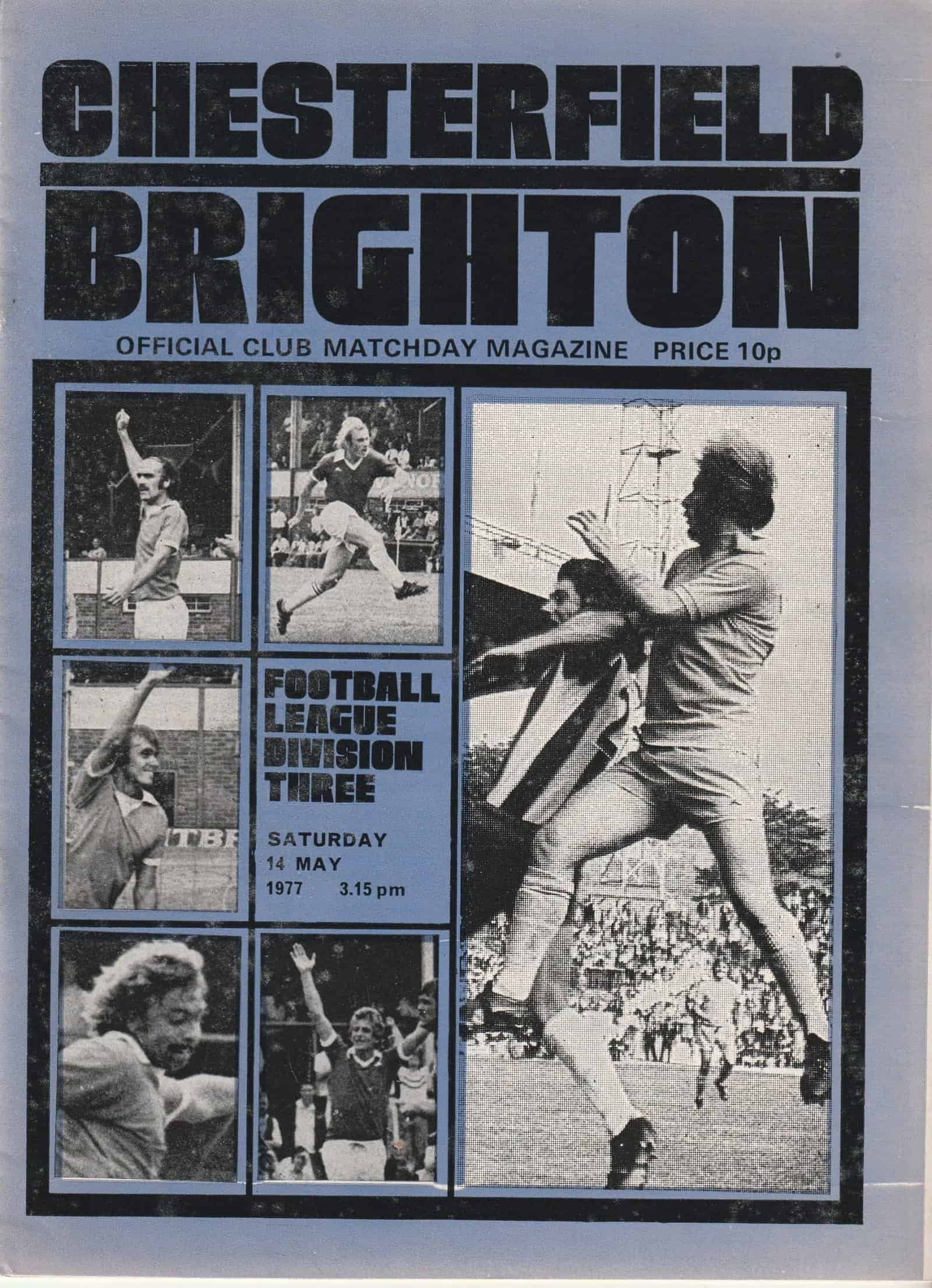 Match: Chesterfield v Brighton & Hove Albion Competition: League Division 3 Date: 14-May-1977 Comments: Rating: 3 Condition: Fading to edge of cover Weight in grams: 120