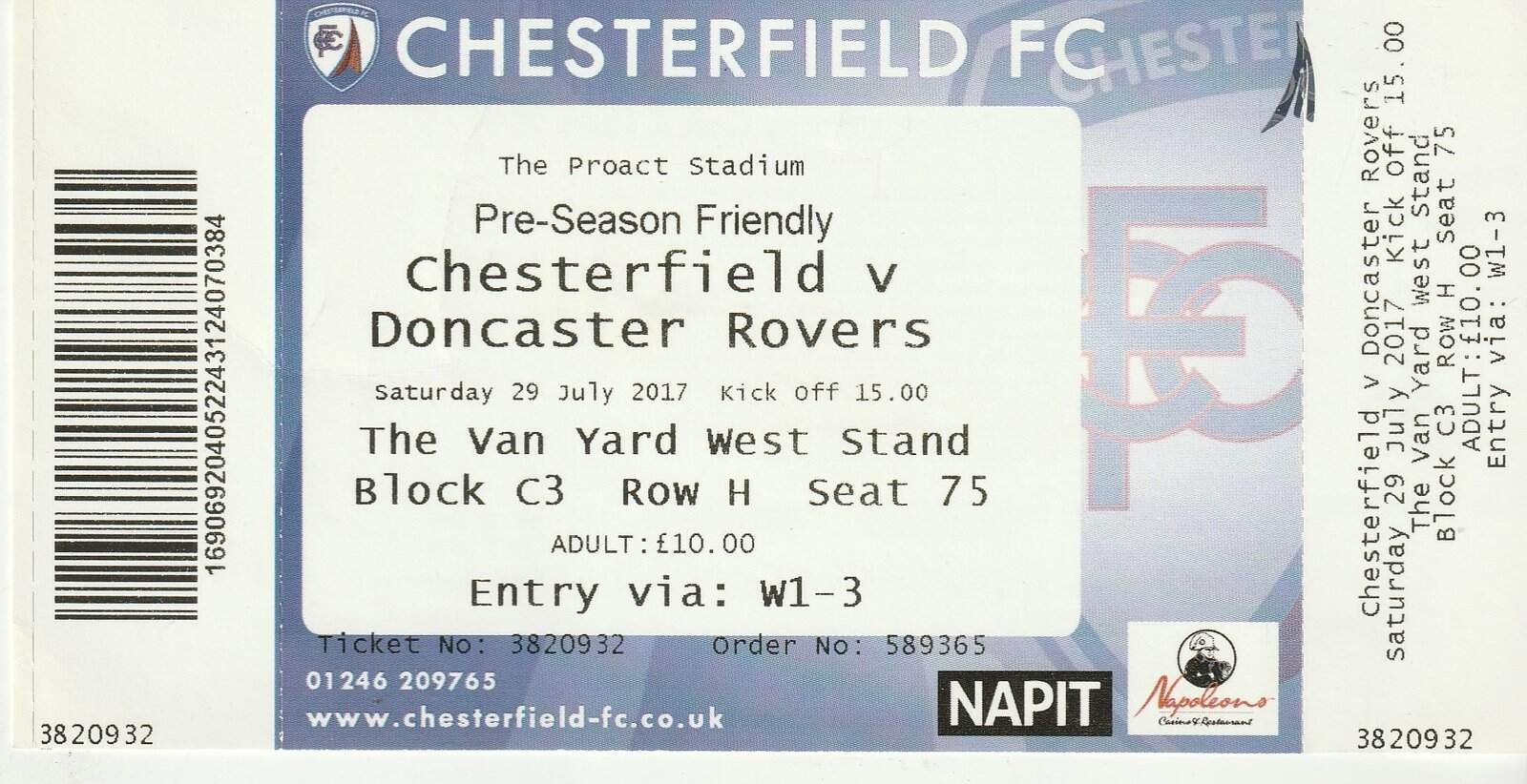 Match: Chesterfield v Doncaster Rovers Competition: Friendly Date: 29-Jul-2017 Comments: Rating: 4 Condition: Very good Weight in grams: 20