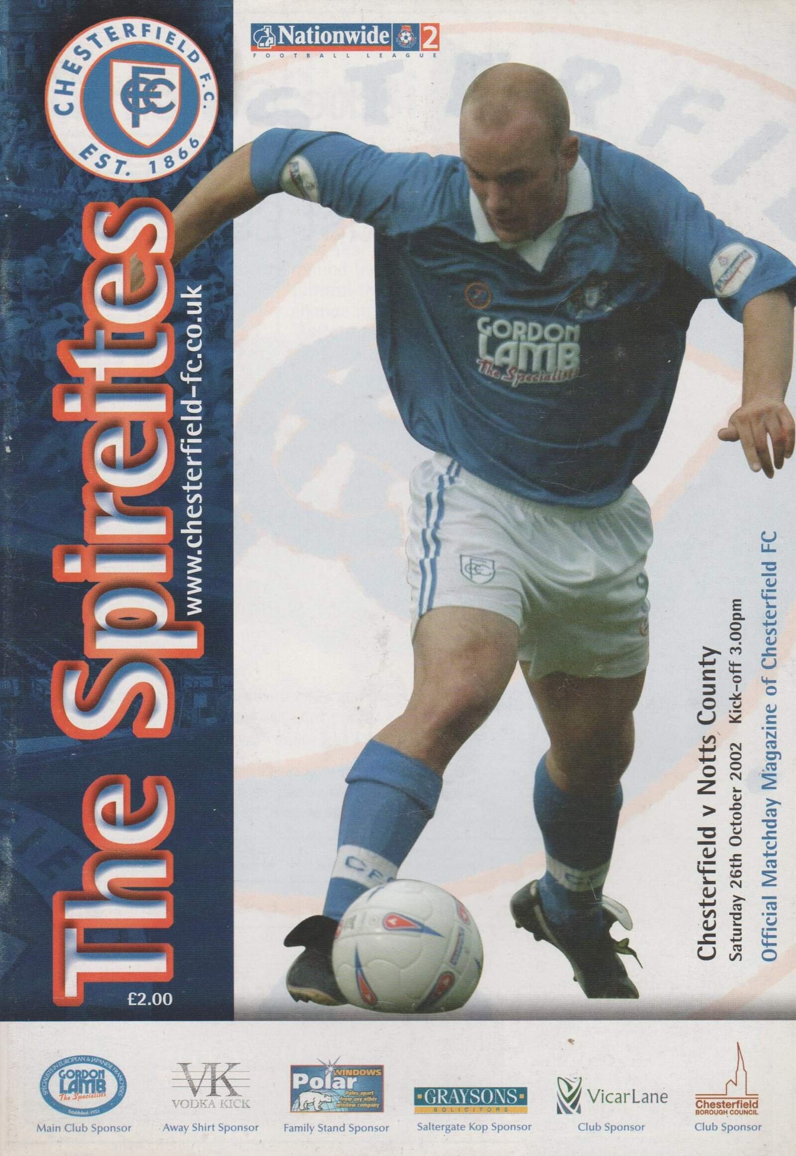 Match: Chesterfield v Notts County Competition: League Division 2 Date: 26-Oct-2002 Comments: Rating: 4 Condition: Very good Weight in grams: 100