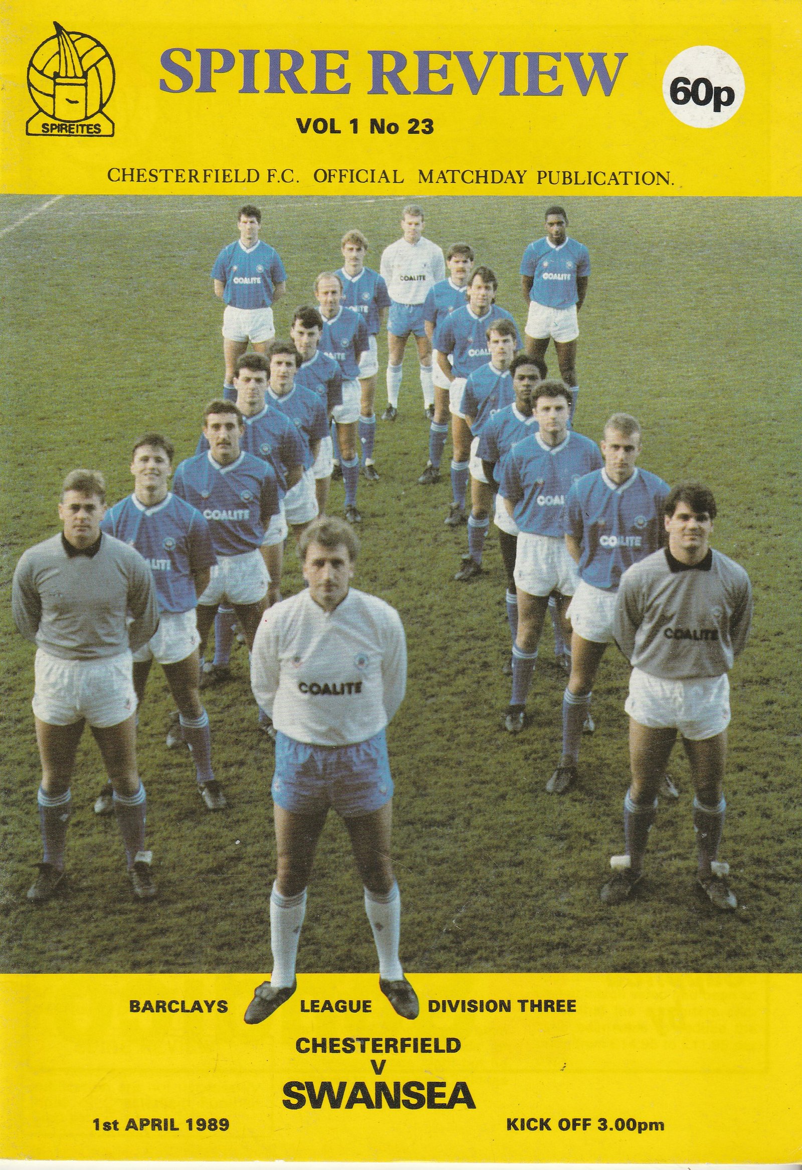 Match: Chesterfield v Swansea City Competition: League Division 3 Date: 01-04-1989 Comments: Rating: 4 Condition: Very good Weight in grams: 140