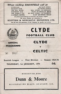 Match: Clyde v Glasgow Celtic Competition: Scottish League Division 1 Date: 01-01-1970 Comments: Rating: 3 Condition: Fold, print smudge Weight in grams: 40