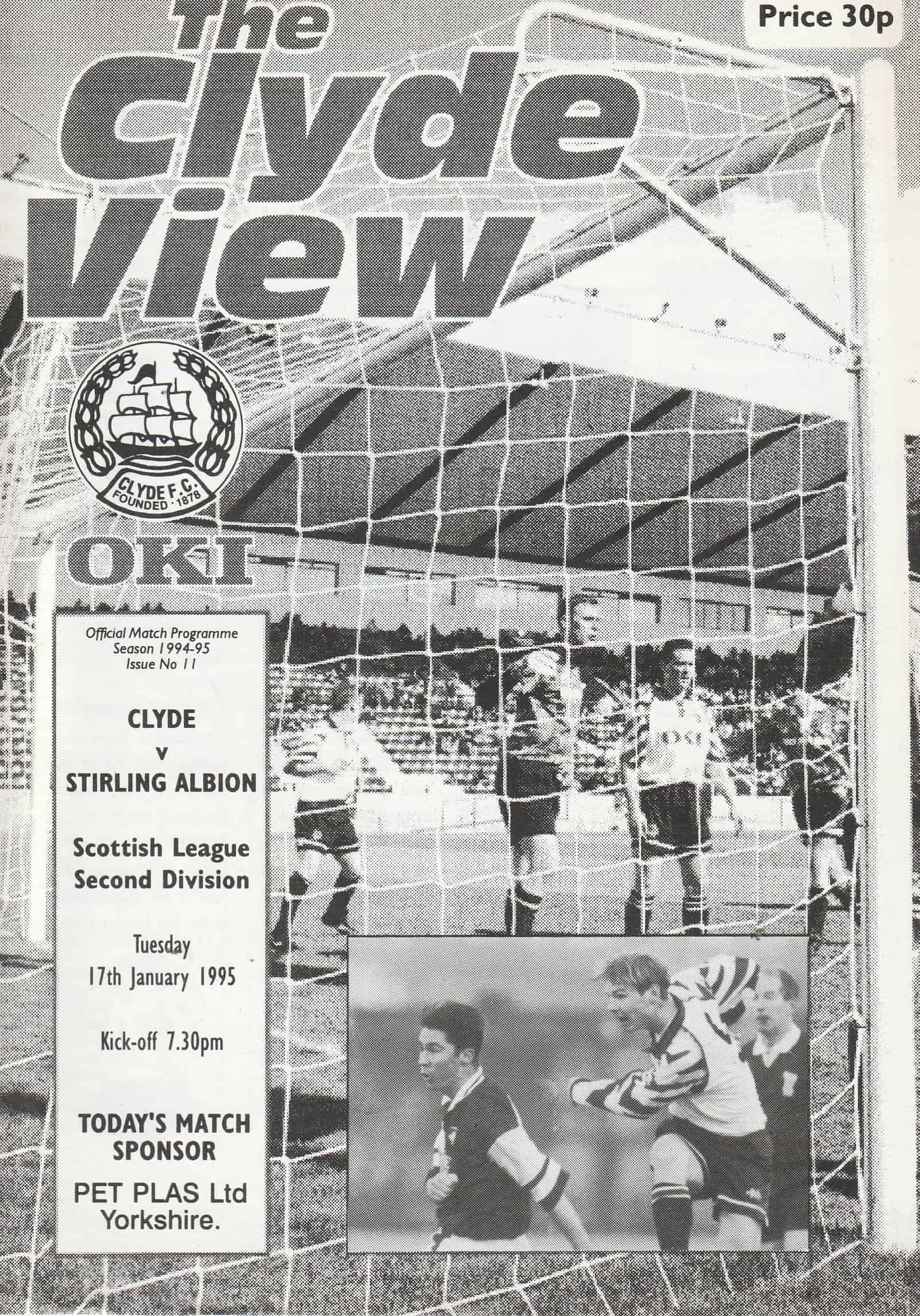 Match: Clyde v Stirling Albion Competition: Scottish League Division 2 Date: 17-Jan-1995 Comments: 4 page issue for re-arranged fixture Rating: 4 Condition: Very good Weight in grams: 60