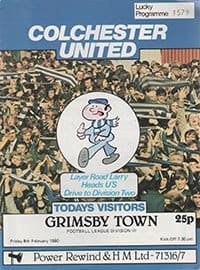 Match: Colchester United v Grimsby Town Competition: League Division 3 Date: 08-02-1980 Comments: Rating: 4 Condition: Very good Weight in grams: 80
