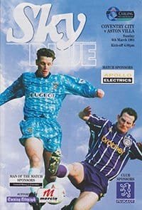 Match: Coventry City v Aston Villa Competition: Premier League Date: 06-03-1994 Comments: Rating: 5 Condition: Excellent Weight in grams: 100