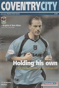 Match: Coventry City v Brighton and Hove Albion Competition: League Division 1 Date: 11-01-2003 Comments: Rating: 4 Condition: Light crease on spine Weight in grams: 200