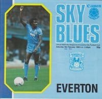 Match: Coventry City v Everton Competition: League Division 1 Date: 09-02-1985 Comments: Postponed issue, imcludes insert for 26th May re-arranged match Rating: 4 Condition: Score on face Weight in grams: 60