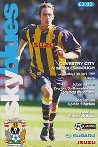 Match: Coventry City v Middlesbrough Competition: Premier League Date: 17-04-1999 Comments: Rating: 4 Condition: Very good Weight in grams: 100
