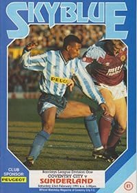 Match: Coventry City v Sunderland Competition: League Division 1 Date: 23-02-1991 Comments: Rating: 5 Condition: Excellent Weight in grams: 100