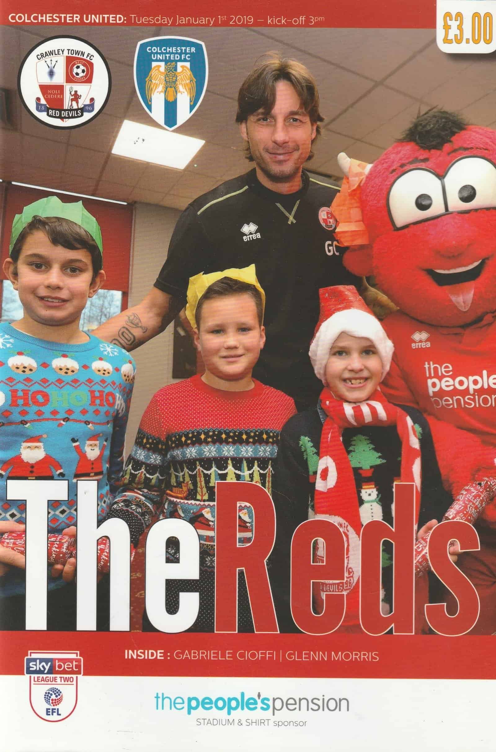 Match: Crawley Town v Colchester United Competition: League 2 Date: 01-Jan-2019 Comments: Rating: 4 Condition: Very good Weight in grams: 160