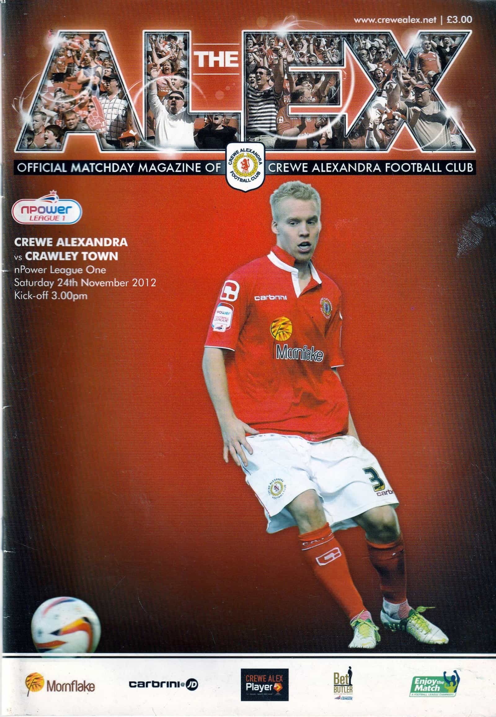 Match: Crewe Alexandra v Crawley Town Competition: League 2 Date: 24-Nov-2012 Comments: Rating: 3 Condition: Slight mark and nick to bottom edge of cover Weight in grams: 200