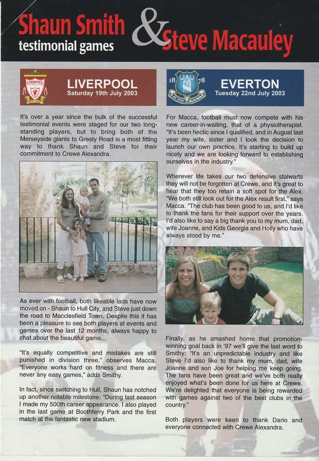 Comments: 4 page issue. Steve Macauley Testimonial Match, Joint issue for Liverpool fixture