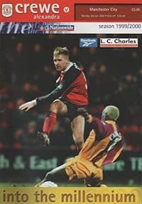 Match: Crewe Alexandra v Manchester City Competition: League Division 1 Date: 03-01-2000 Comments: Rating: 4 Condition: Very good Weight in grams: 100