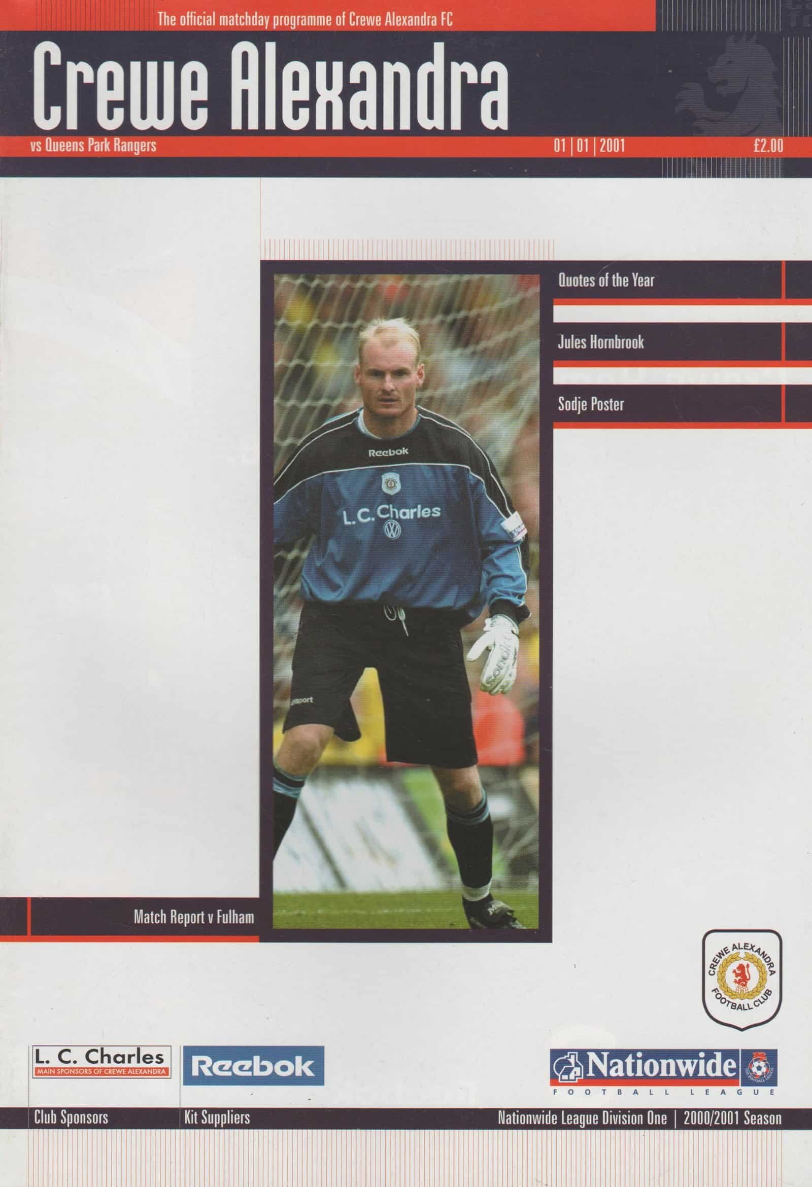 Match: Crewe Alexandra v Queens Park Rangers Competition: League Division 1 Date: 01-Jan-2001 Comments: Postponed issue Rating: 4 Condition: Very good Weight in grams: 100