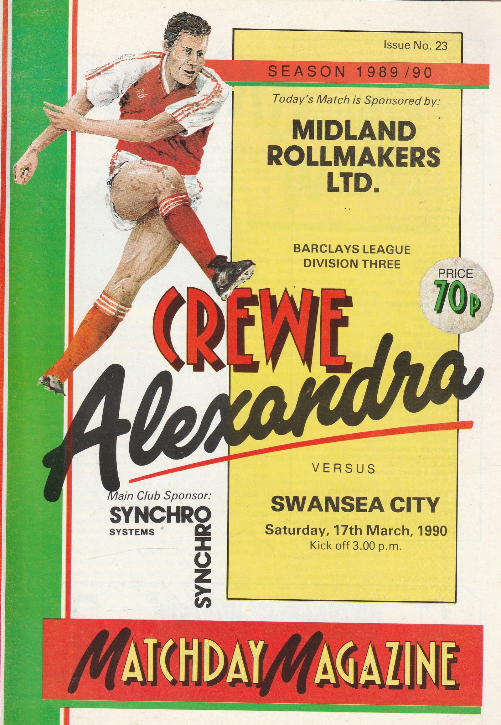 Match: Crewe Alexandra v Swansea City Competition: League Division 3 Date: 17-Mar-1990 Comments: Rating: 4 Condition: Very good Weight in grams: 120
