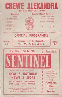 Match: Crewe Alexandra v Walsall Competition: League Division 4 Date: 19-12-1959 Comments: Rating: 3 Condition: Fold Weight in grams: 40