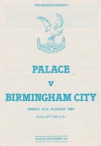 Match: Crystal Palace v Birmingham City Competition: Friendly Date: 21-08-1981 Comments: 4 page issue Rating: 4 Condition: Very good Weight in grams: 20
