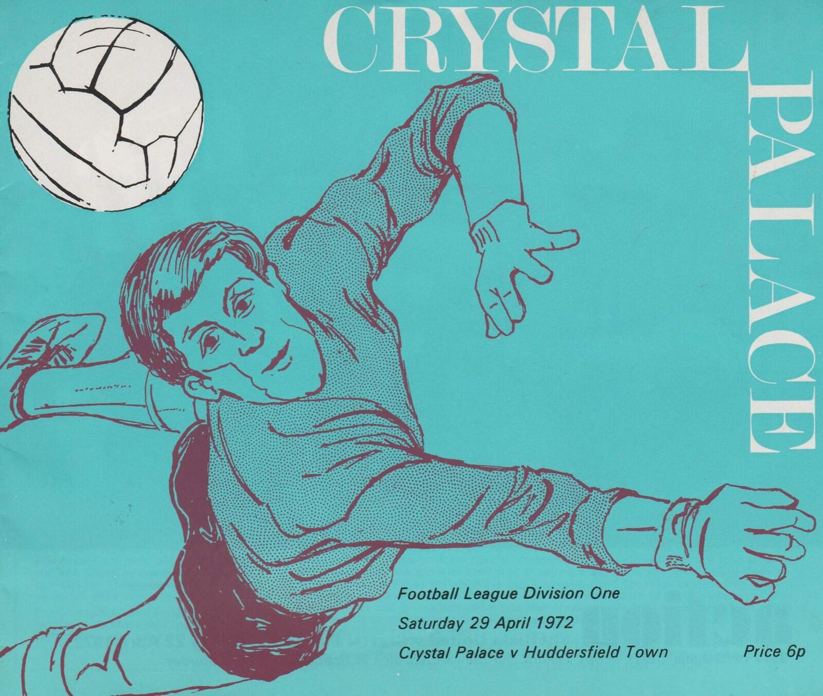 Match: Crystal Palace v Huddersfield Town Competition: League Division 1 Date: 29-Apr-1972 Comments: Rating: 3 Condition: Small scuff on edge of back page Weight in grams: 80
