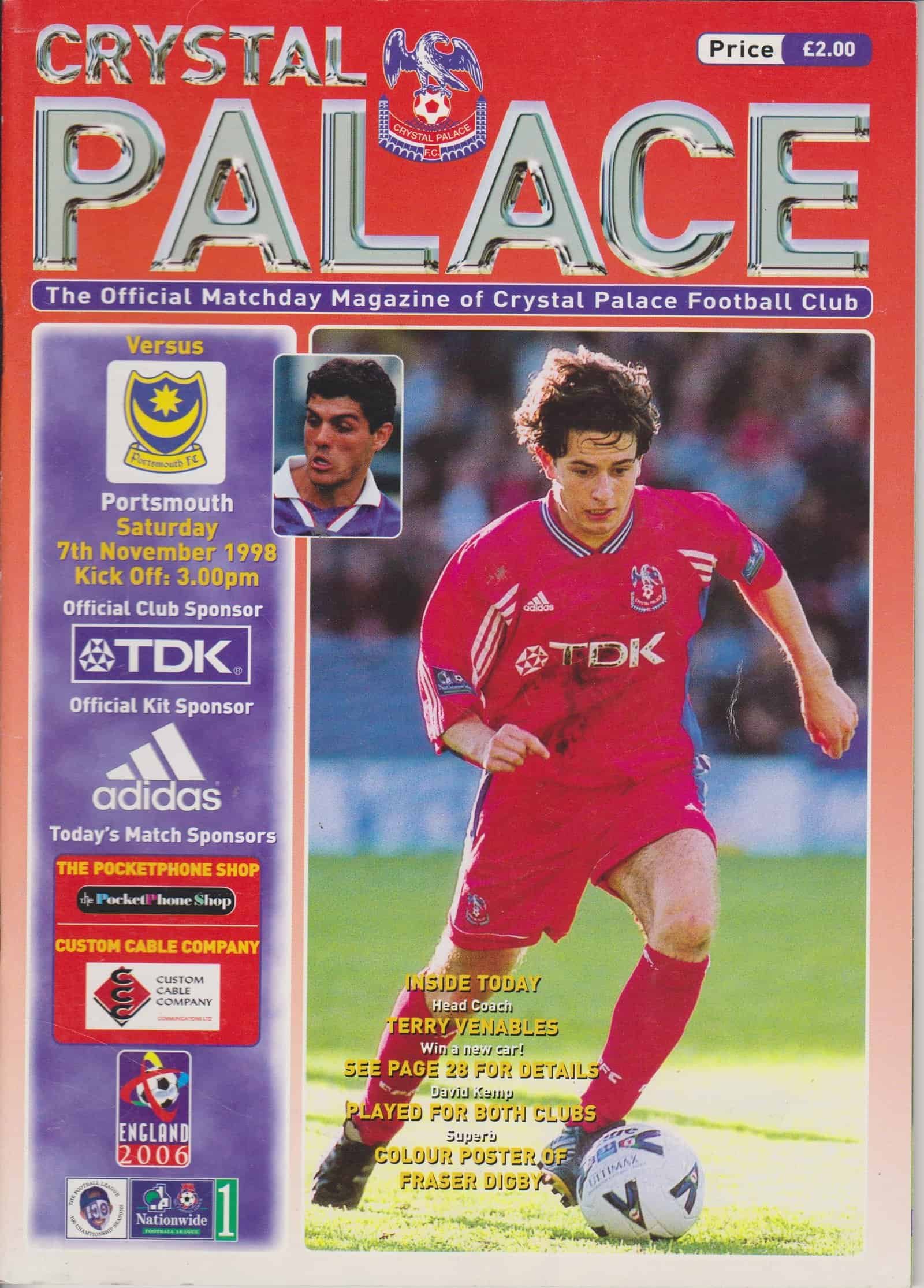 Match: Crystal Palace v Portsmouth Competition: League Division 1 Date: 07-Nov-1998 Comments: Rating: 4 Condition: Very good Weight in grams: 180