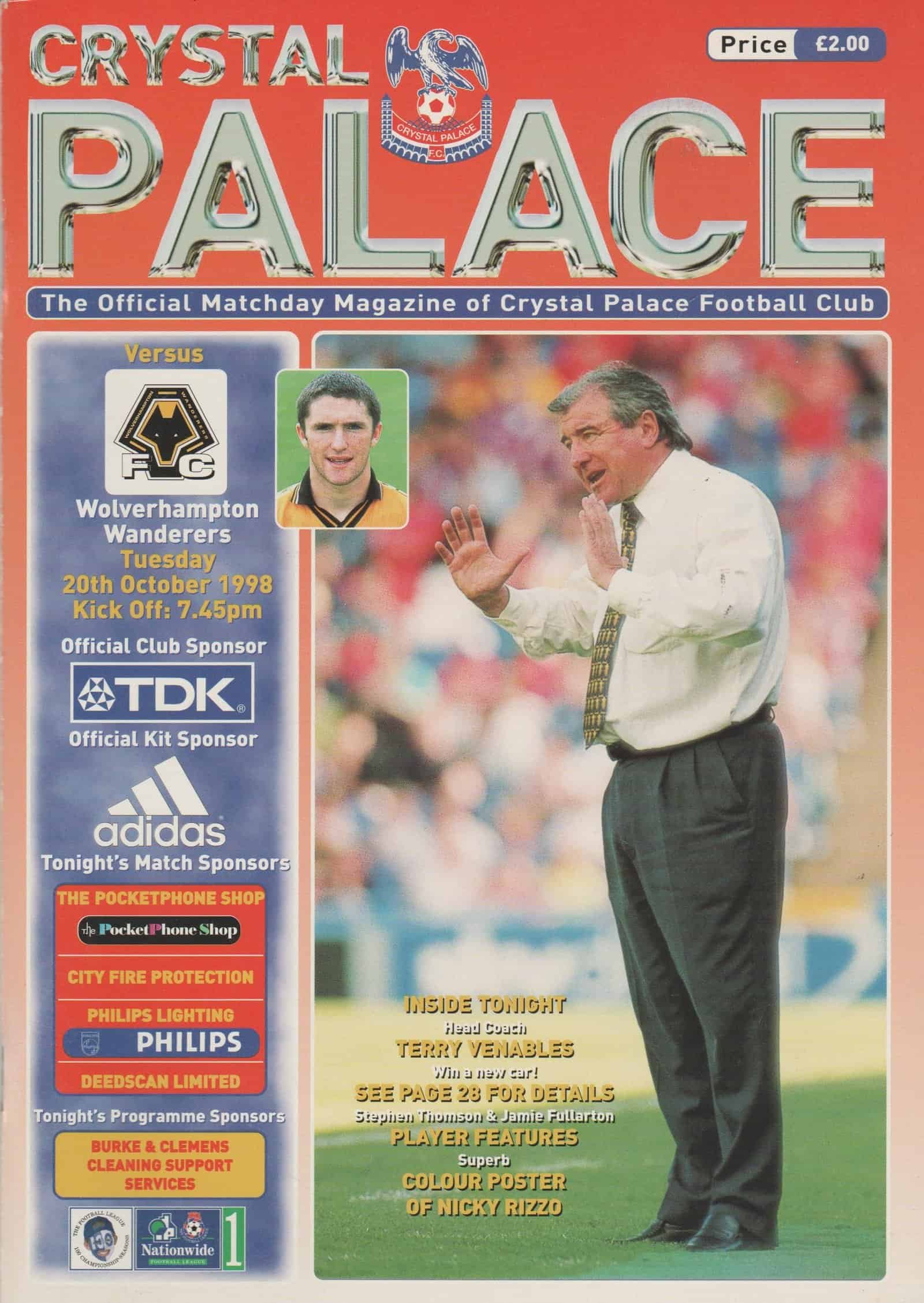 Match: Crystal Palace v Wolverhampton Wanderers Competition: League Division 1 Date: 20-Oct-1998 Comments: Rating: 4 Condition: Very good Weight in grams: 220