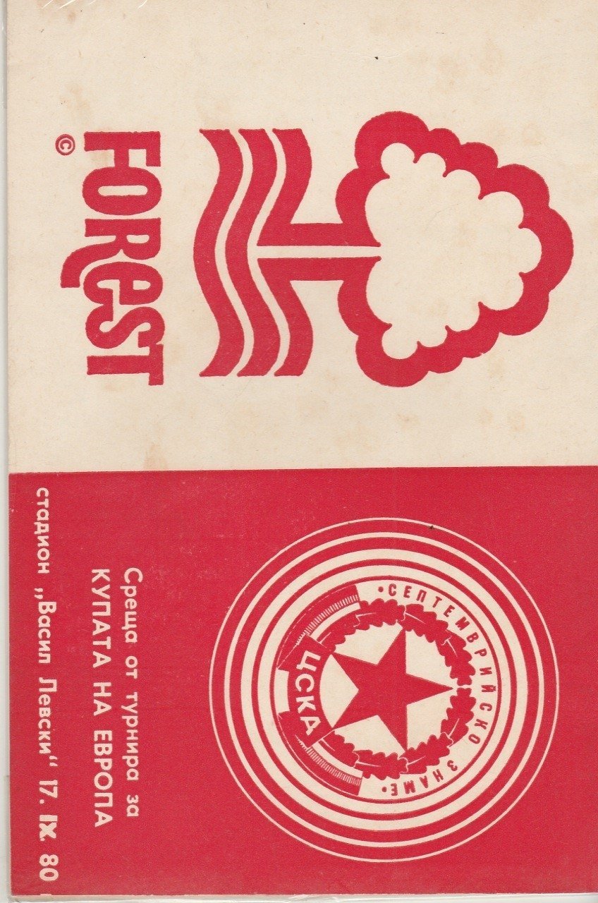 Match: CSKA Sofia v Nottingham Forest Competition: European Cup 1st Round 1st leg Date: 17-09-1980 Comments: Rating: 4 Condition: Very good Weight in grams: 80