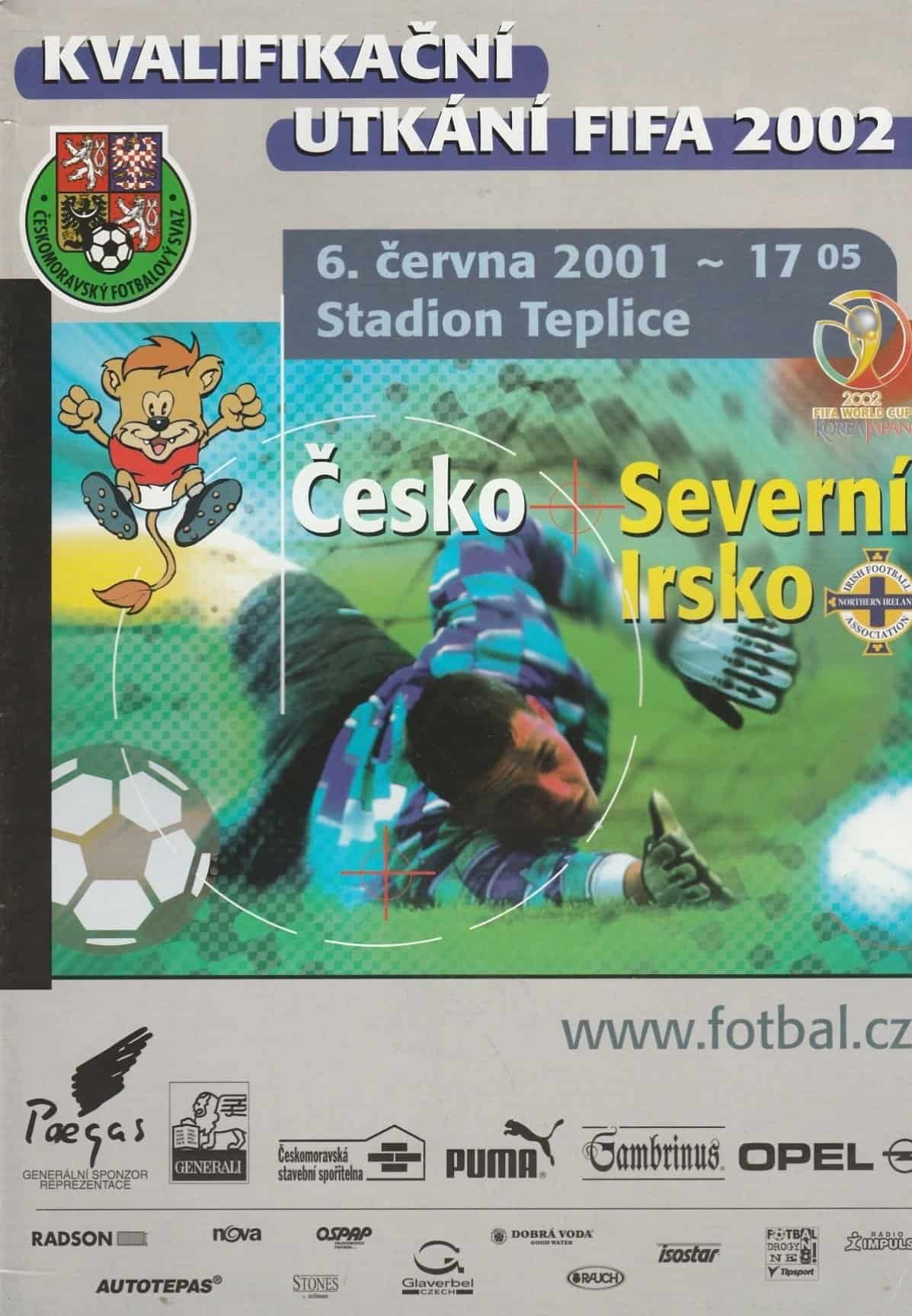 Match: Czech Republic v Northern Ireland Competition: World Cup Qualifying Group 3 Date: 06-Jun-2001 Comments: Rating: 4 Condition: Very good Weight in grams: 200