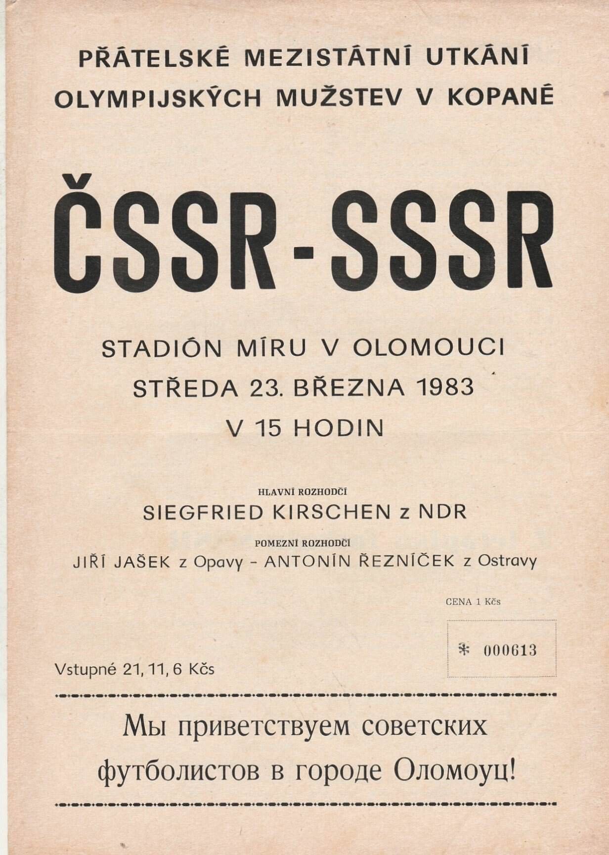 Match: Czechoslovakia v USSR Competition: Olympic qualifying round Date: 23-Mar-1983 Comments: 4 page issue Rating: 4 Condition: Good Weight in grams: 60