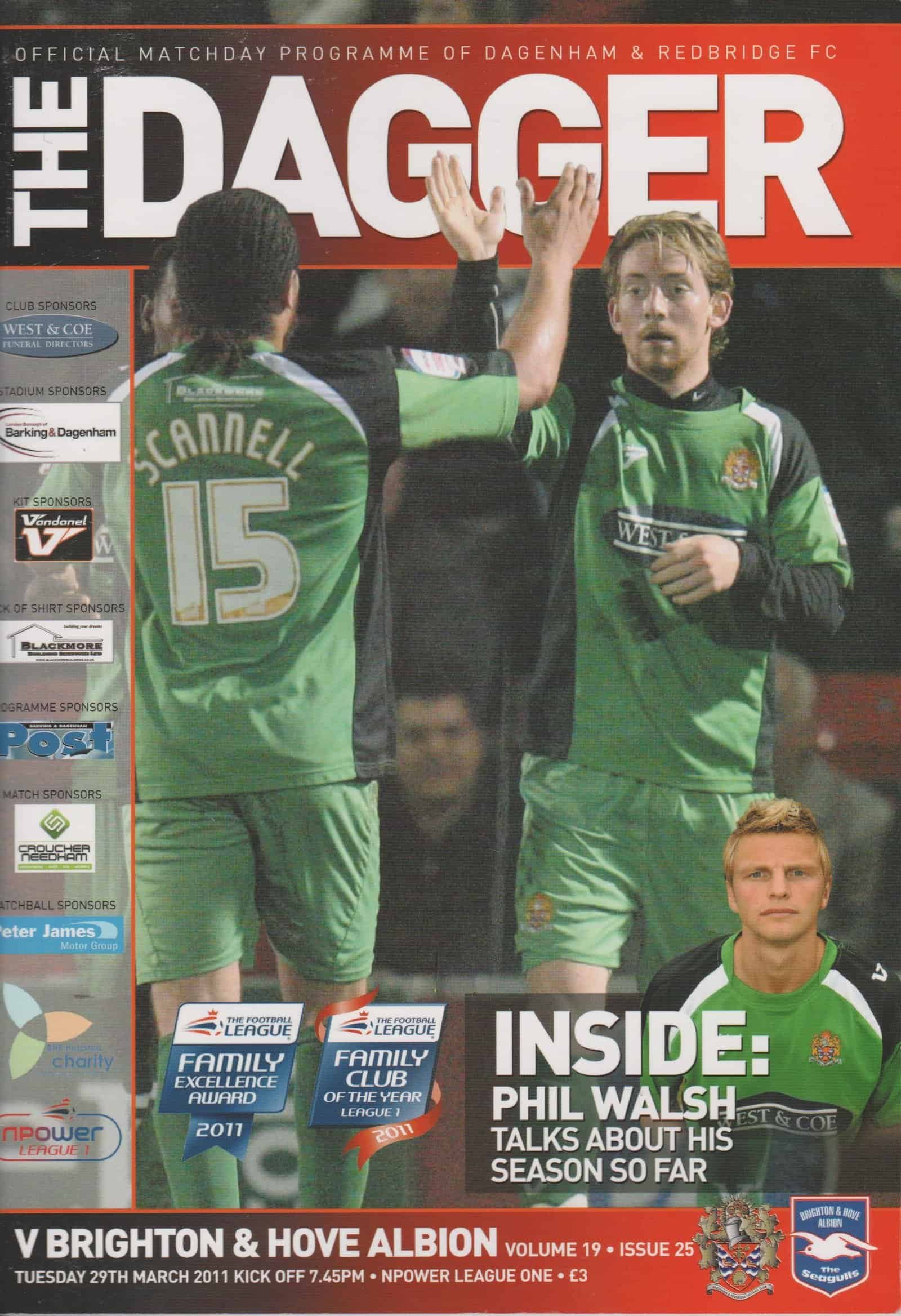 Match: Dagenham & Redbridge v Brighton & Hove Albion Competition: NPower League 1 Date: 29-Mar-2011 Comments: Rating: 4 Condition: Very good Weight in grams: 120