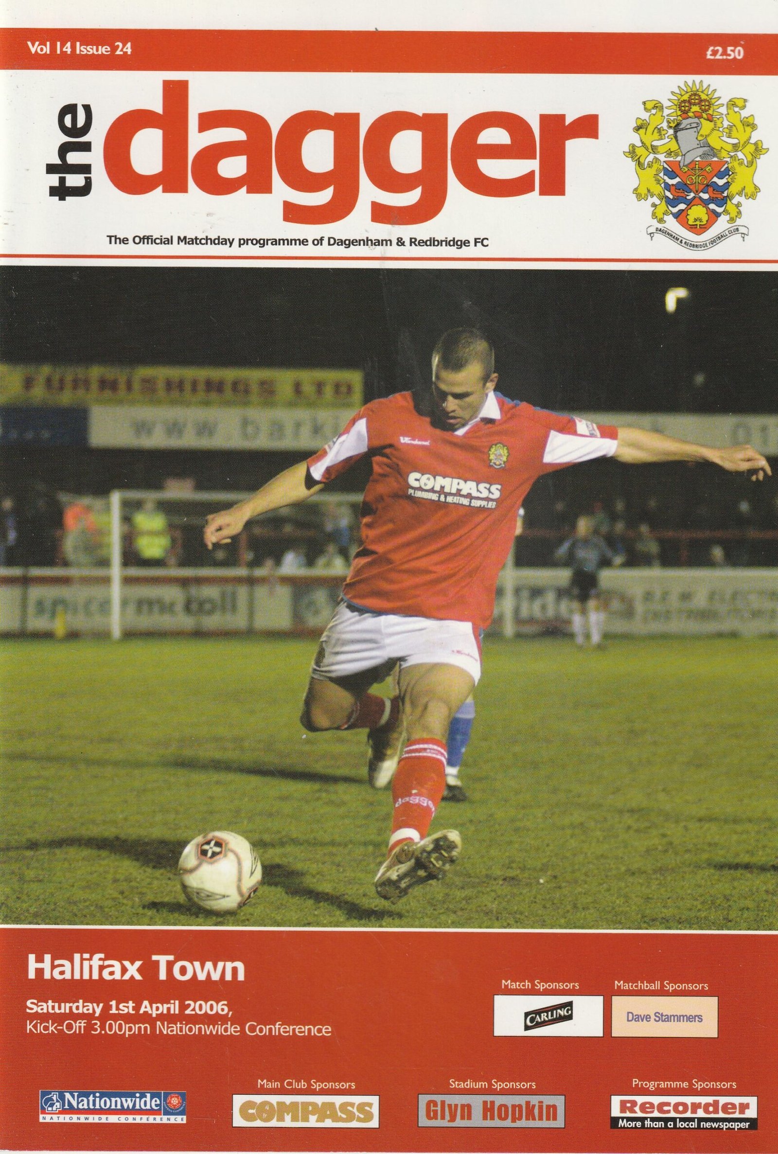 Match: Dagenham & Redbridge v Halifax Town Competition: Nationwide Conference Date: 01-Apr-2006 Comments: Rating: 4 Condition: Very good Weight in grams: 200