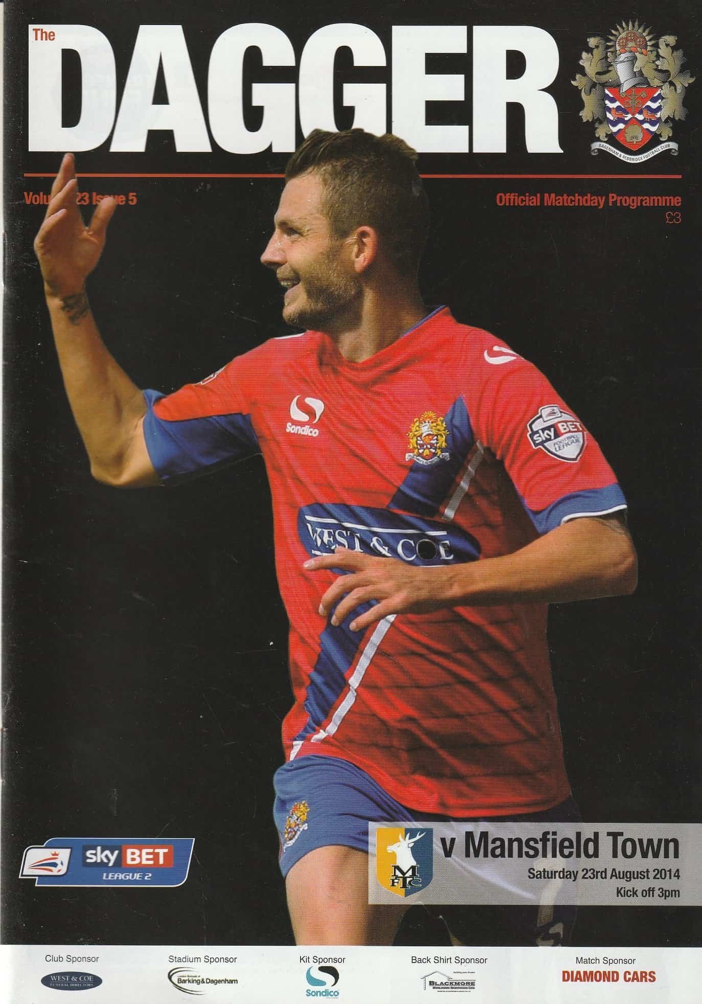 Match: Dagenham & Redbridge v Mansfield Town Competition: League 2 Date: 23-Aug-2014 Comments: Rating: 4 Condition: Very good Weight in grams: 200