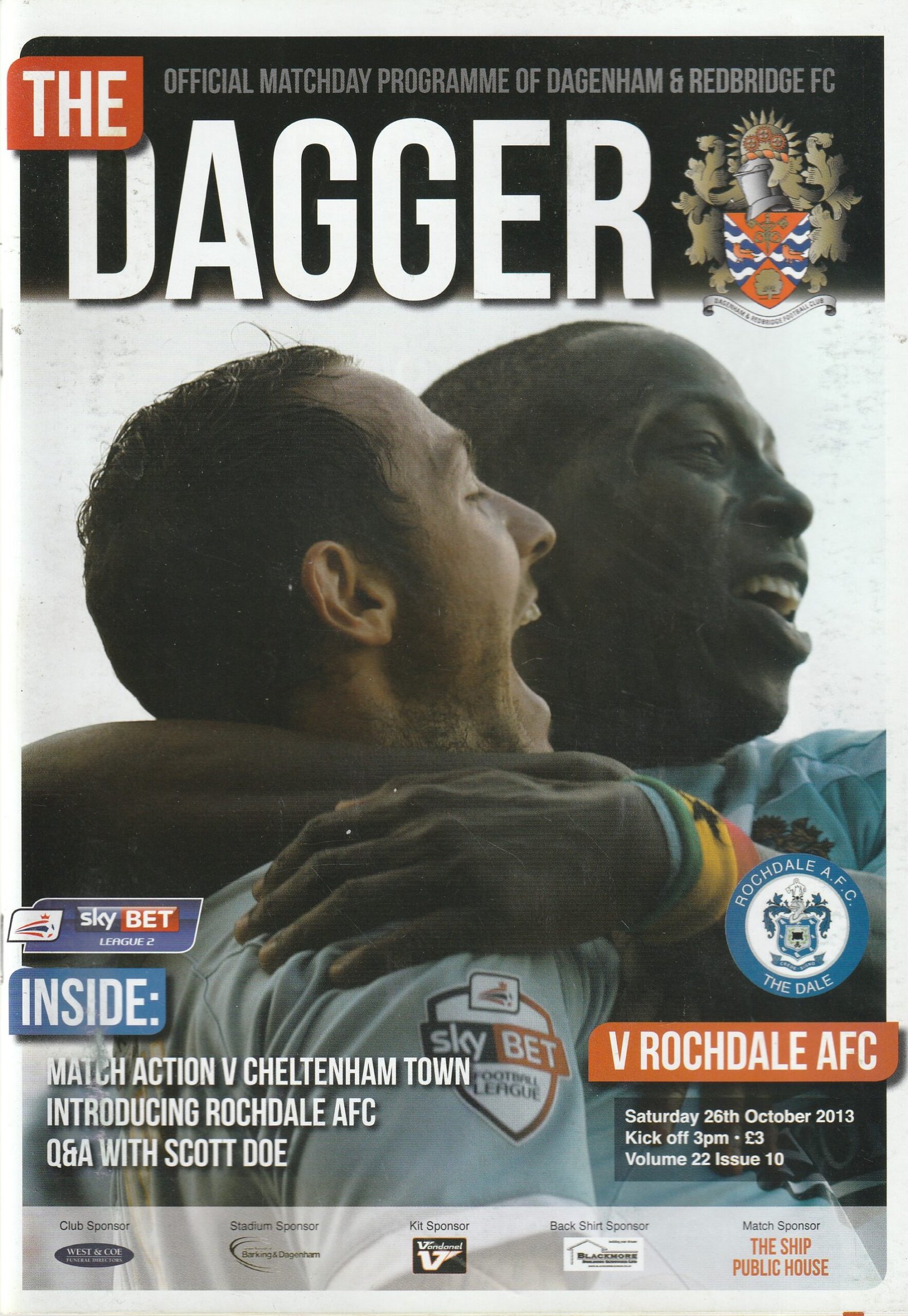Match: Dagenham & Redbridge v Rochdale Competition: League 2 Date: 26-Oct-2013 Comments: Rating: 4 Condition: Very good Weight in grams: 160