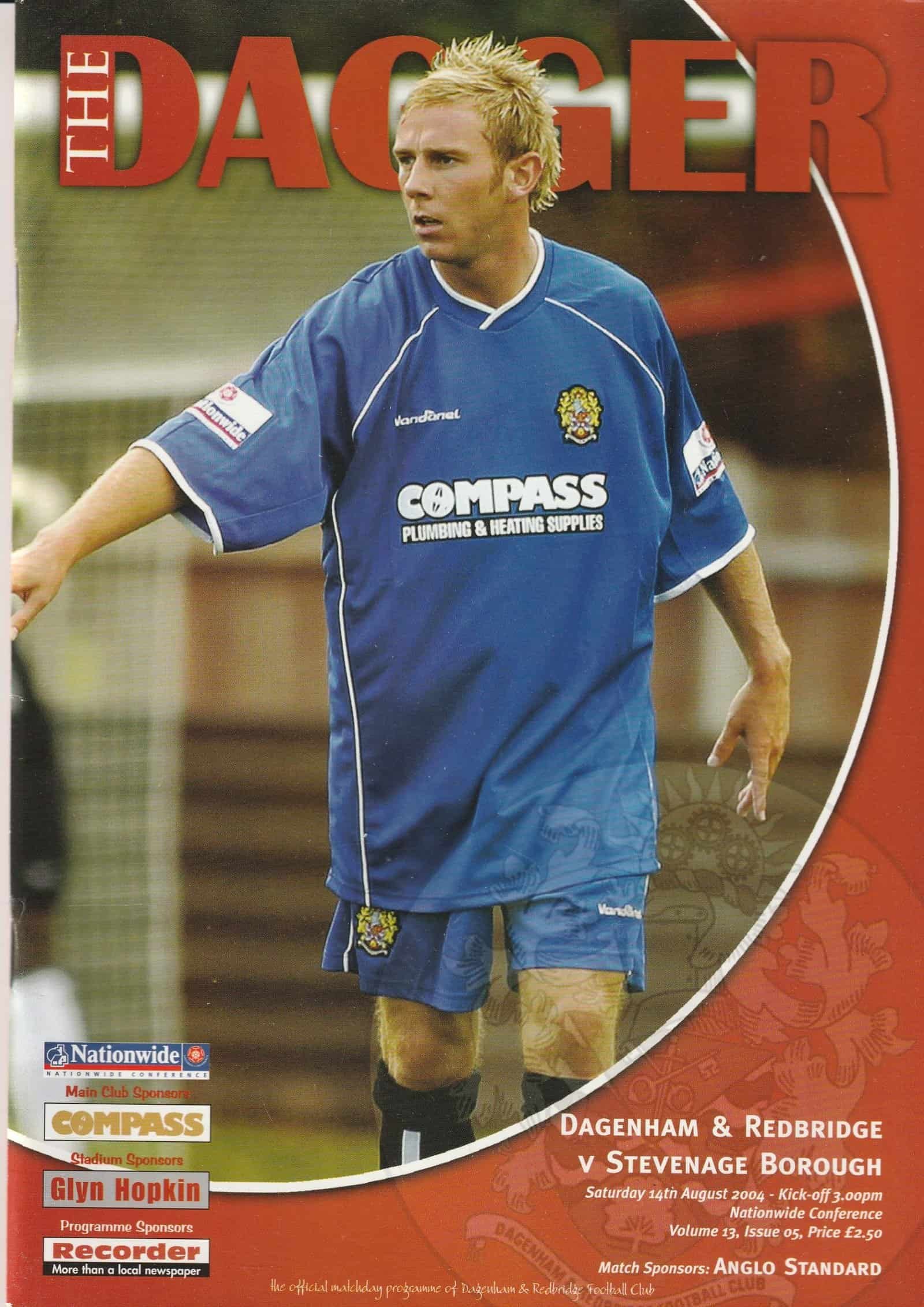 Match: Dagenham & Redbridge v Stevenage Competition: Nationwide Conference Date: 14-Aug-2004 Comments: Rating: 4 Condition: Very good Weight in grams: 100
