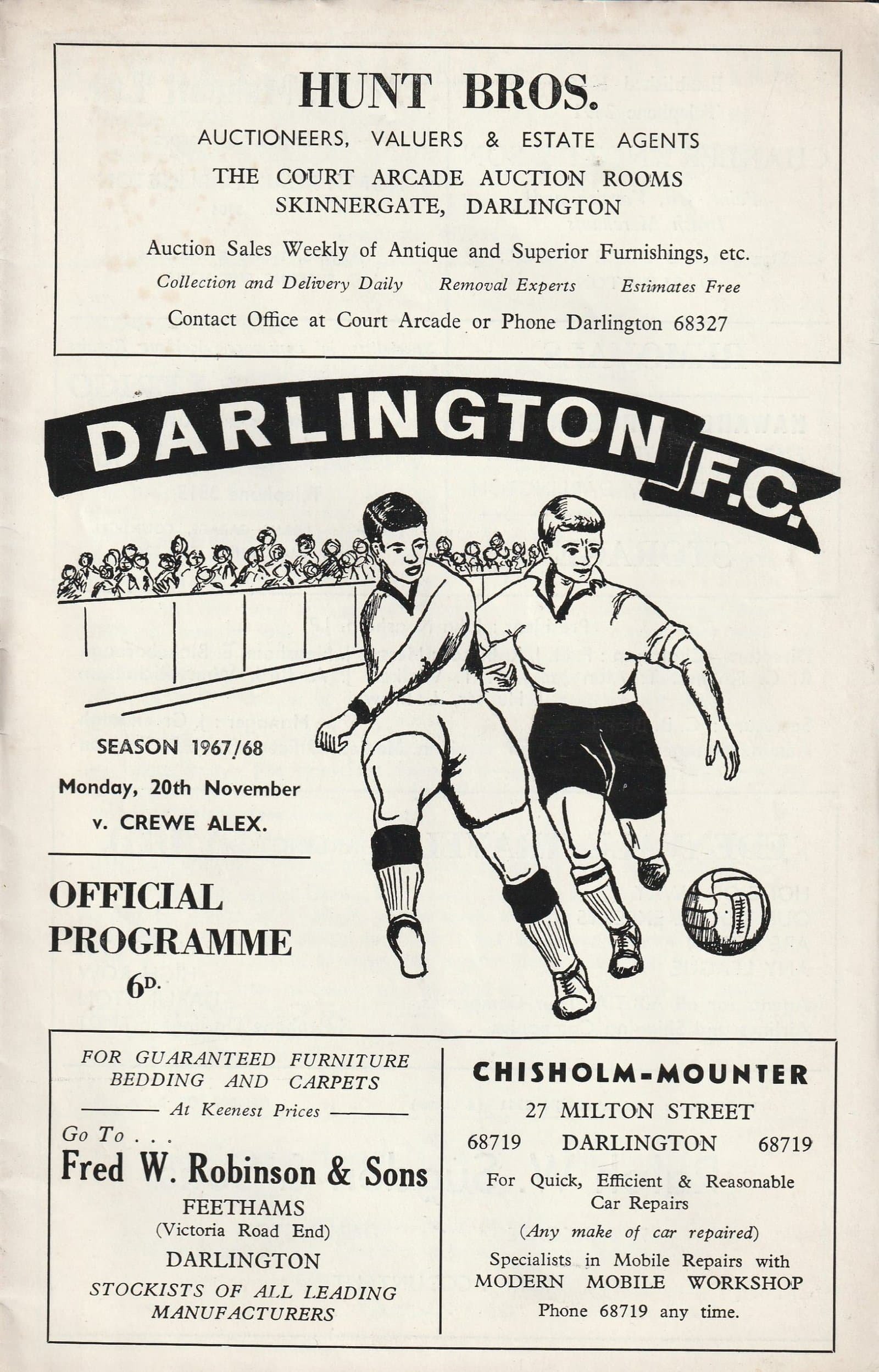 Match: Darlington v Crewe Alexandra Competition: League Division 4 Date: 20-Nov-1967 Comments: Rating: 4 Condition: Very good Weight in grams: 60